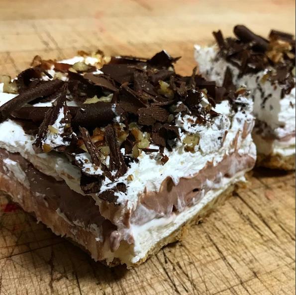 Bez obzira na naziv, radi se o retro poslastici koja se lako priprema i obožava na proslavama i okupljanjima. Osnovu čini prhka kora od maslaca, brašna i oraha, na koju se slažu slojevi kreme, šlaga i šećera u prahu, zatim puding od čokolade i vanile, a sve završava novim slojem šlaga.