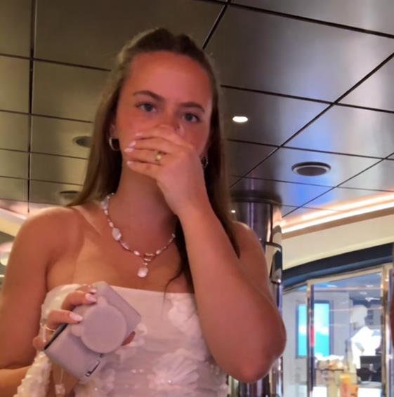 Spenser i njen verenik Konor, koji su se verili u novembru prošle godine, ove nedelje su na krstarenju proslavljali njegov rođendan. Za romantičnu večeru u ponedeljak obukla je dugu belu haljinu sa motivima školjki, a kombinaciju je upotpunila svetlucavom torbicom i bisernom ogrlicom.
