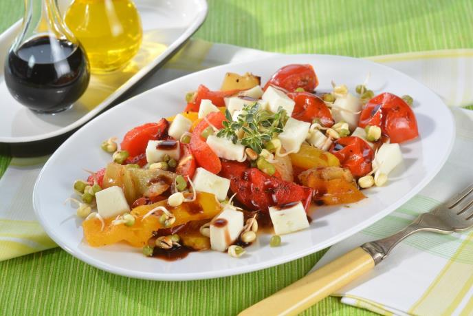 Paradajz i paprike seckajte na kockice, luk sitno naseckajte. Sve pomešajte, dodajte sirće i ulje, posolite i ostavite deset minuta. Po želji, salata se može rashladiti.