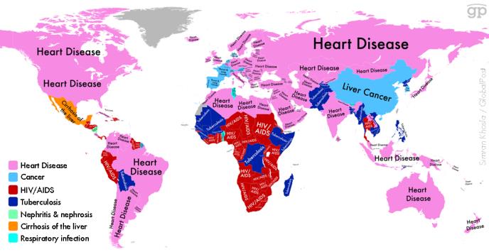 S druge strane u Africi ljudi najviše umiru od side i tuberkuloze.