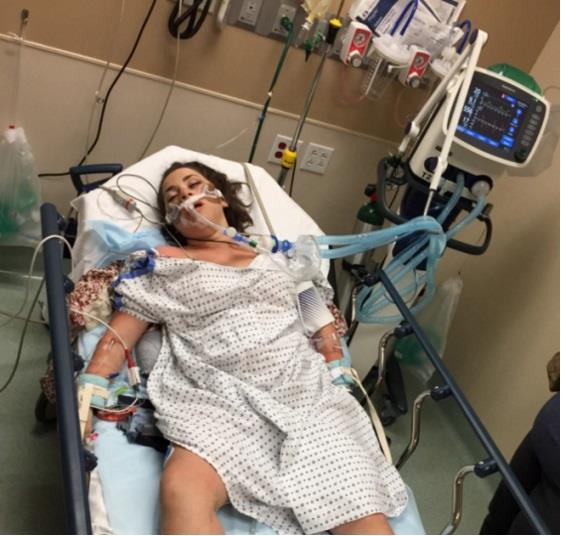 Sledeće čega se seća je bilo buđenje iz kome. Imala je cev koja joj se spuštala niz grlo, a ruke su joj bile vezane kako je ne bi izvadila. Doktori su joj rekli da joj je mozak nije na ništa reagovao, odnosno da nije reagovala ni na verbalnu, ali ni na bolnu stimulaciju. Patila je od akutne respiratorne insuficijencije i akutnog trovanja alkoholom.