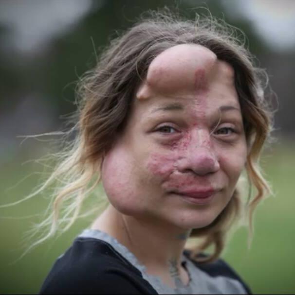 Nakon niza bezuspešnih operacija, ova majka dvoje dece konačno je pronašla tim hirurga koji su ubeđeni da će uspeti da joj u potpunosti i zauvek reše problem. Oni su joj u lice ugradili balone različitih dimenzija, koji su tu da rašire kožu, kako bi mogli da joj prekriju sve delove unakažene ožiljcima.