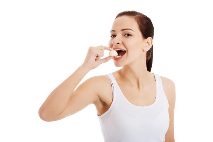 * Ako vam predstavlja problem staviti ceo čen belog luka u usta, počnite sa četvrtinom čena ili manjim komadićem, i polako povećavajte količinu.