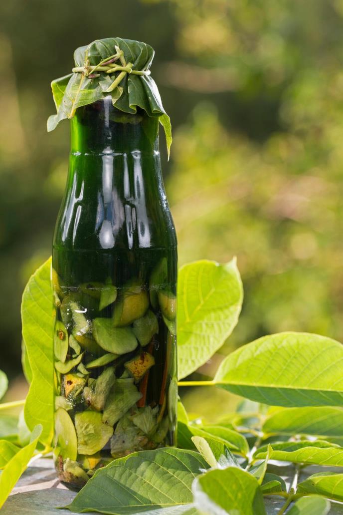 Priprema: Stavite rukavice i mlade orahe iseckajte, stavite ih u veću staklenu teglu pa preko njih dodajte 1kg meda i 1l rakije. Zatvorite odgovarajućim poklopcem pa ostavite da tegla stoji na suncu 40 dana. Povremeno promešajte sadržaj plastičnom kašikom.
