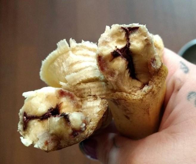 Devojčici je odjednom pozlilo. Liza je uzela bananu i šokirala se, jer je banana u sredini bila crvenkasto-smeđa. To se protezalo kroz celu voćku, a izgledalo je otprilike kao na ovoj fotografiji.