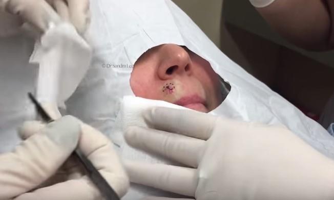 Kako nije mogla da je izvadi običnim ceđenjem, otišla je kod doktorke Sandre Li koja je morala da joj secka kožu kako bi izvadila bubuljicu koja je bila veličine pasulja.