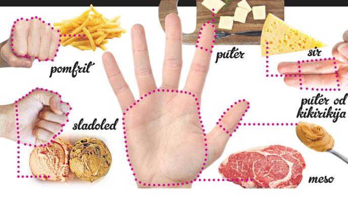 Porcija testenine treba da bude veličine stisnute šake, baš kao i dvostruka porcija sladoleda, porcija sira ne bi smela da bude veća od dva spojena prsta, a porcija „nutele“ treba da bude kao poslednji zglob na palcu, što je ekvivalent jedne kašičice.