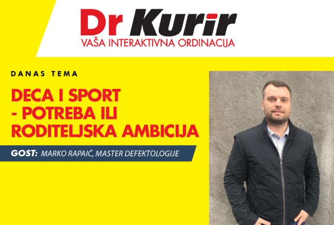 Da li deca biraju sport iz ličnog interesovanja ili tu ulogu preuzimaju roditelji i u kojoj meri oni treba da budu uključeni u bavljenje sportom svog deteta samo su neka od pitanja na koja će u današnjoj emisiji Dr Kurir odgovore dati Marko Rapaić, master defektologije.