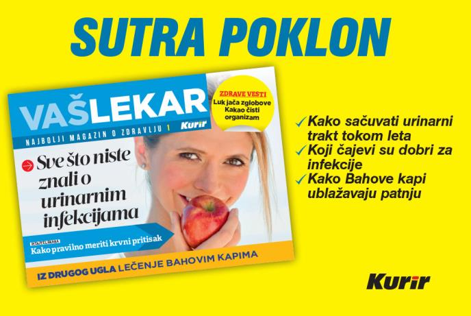 Od sutra samo u Kuriru čekaju vas poklon dodaci – Vaš lekar, spremljeni na 16 strana, u kojima smo s priznatim kardiolozima, hirurzima, kao i specijalistima iz različitih oblasti medicine pokušali da odgovorimo na pitanja kako sačuvati i unaprediti svoje zdravlje u današnjem svetu brzog životnog tempa.