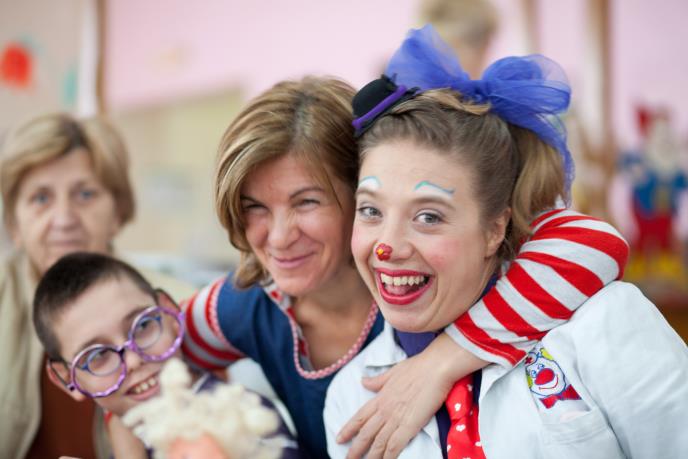 Smehoterapija doktora-klovnova najviše pomaže, kažu, kod cerebralne paralize. Njih najviše obraduju. Toj deci je nekako najsumornije od svih instituta. Mnogi nisu sposobni za školu, ceo dan sede u kolicima pored televizora... Dani predugački i predosadni.