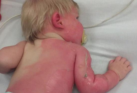 Na fotografiji koja je uzdrmala javnost nalazi se devetomesečna beba po imenu Nikolas Vudžer, koji po telu ima teške opekotine usled vrele vode iz baštenskog creva koje je dugo stajalo na suncu.