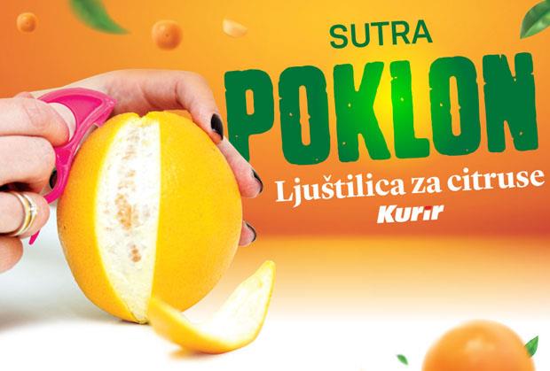 U toku je sezona prehlada i virisa, a da biste se zaštitili ili izlečili, potrebno je da ojačate imuni sistem kako bi mogao da se izbori sa svim što ga napada. Najbolje je to uraditi na prirodan način, to jest putem ishrane. Poznato je da vitamin C pozitivno utiče na imuni sistem, a najviše ga ima u citrusnom voću. Sutra ćete uz dnevne novine Kurir dobiti na poklon LJUŠTILICU ZA CITRUSE. Veoma je jednostavna za korišćenje, samo je prislonite na voće koje želite i zasecite koru, a zatim pomoću vrha ljuštilice odvojite koru i rukom je oljuštite.