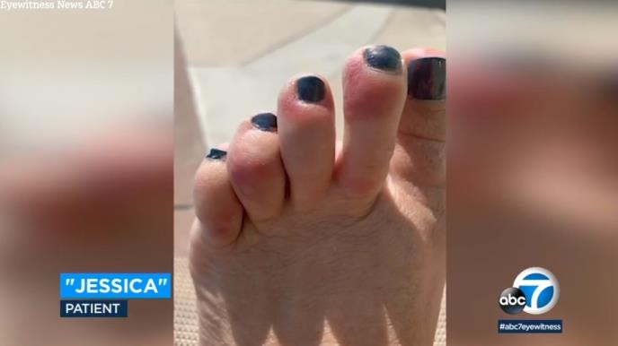 "Pogledala sam dole dok sam se spremala za tuširanje i pomislila sam: "O Bože, moj prst na nozi je pocrneo. Imala sam osećaj kao da na telu imala plikove", rekla je Džesika za "ABC 7".