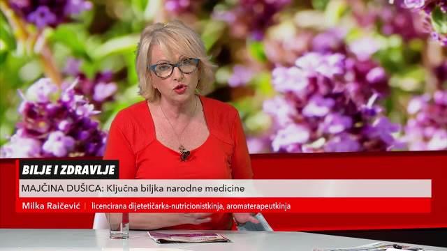 "Majčina dušica lepo zvuči. Svima nama sad u ovom periodu treba, kao što nam treba hrana. Potrebna nam je regeneracija majčinom dušicom, pre svega zbog alergena, kijavice, kašljanja, problema sa grlom, za šta je majčina dušica idealna. U svakom sirupu protiv kašlja se nalazi ova biljka", kaže Raičević.