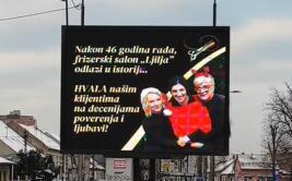 Posle skoro pet decenija rada, njen život se ovih dana potpuno promenio. Omiljene makaze okačila je o klin, a rastanak od dragih klijentkinja podnela je veoma emotivno. Nijedno „hvala” koje je želela da im uputi za sve lepe zajedničke trenutke nije joj se učinilo dovoljno veliko, pa je na kraju baš zato odabrala bilbord.