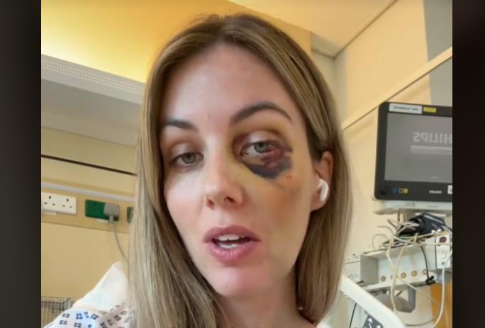"Bila sam bez svesti pet minuta", otkrila je, pokazujući modricu oko oka i ozbiljne povrede od pada.